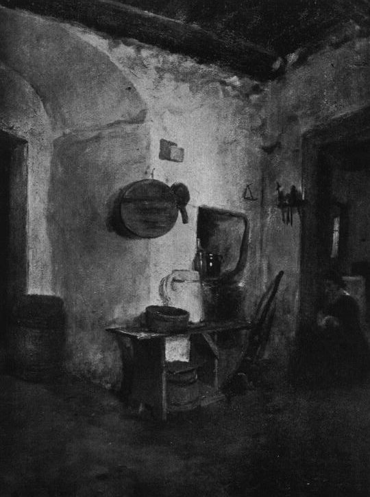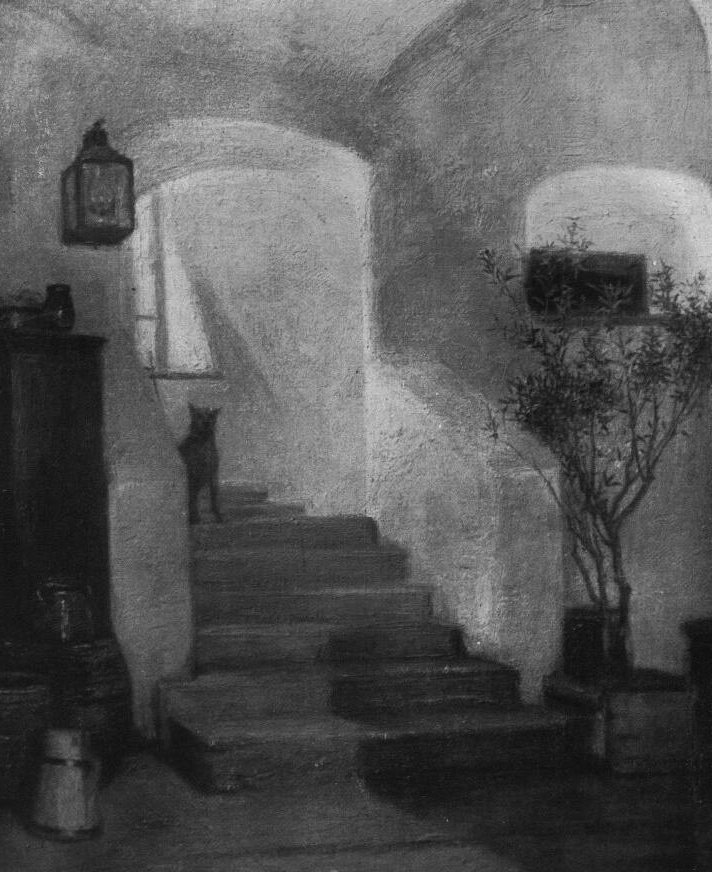 Mielőtt a művészhez mentünk volna, tudtuk, hogy leginkább intérieur-őket fest, ismertük sok oly dolgát, amelyek a műcsarnokban voltak kiállítva. Azt azonban nem tudtuk, hogy képeinek több mint kilencven percentje ily sujet. Erre nézve is megkérdeztük a művészt.