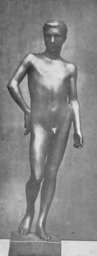 E szobrokon már észrevehető volt olyan törekvés, amely a görögök és a reneszánsz tárházából közvetlen tapasztalatokat merít. Azóta kissé bőven teltek az évek. Közben a művész a "Nyolczak"-nál élvezett vendégjogot s mateljesebben, szuverénebbül érvényesül szobrain az a felfogás, az a stílus, amelyhez az első inspirációt Firenze adta. Bizonyos azonban, hogy az az archaizáló vonás, amely az újabb németeknél már az unalomig menő divatosság szimptomáit öleli fel, nincs meg rajtuk. Szobrai: testek, a maguk logikus felépítettségében. Célzatuk nem az, hogy külön valami önmagáért való vonalat csillogtassanak, hirtelen történő mozgást, nekilendülést vagy belső, lelki hullámzást. Hanem: formákat, amint összekapcsolódnak organikus egésszé. Előadásuk mellőzi a felület számtalan hor-padását, az izmok és erek aprólékosságait is kirajzoló hűséget. A lényeget keresi, lehetőleg tömören és egyszerűsítve, anélkül, hogy bárhol valamely forma az elvont geometrikus sémához járna közel. Lábuk alól nem engedik ki végkép ugyan a naturalista igazság talaját, de a stílus magaslatára igyekeznek.