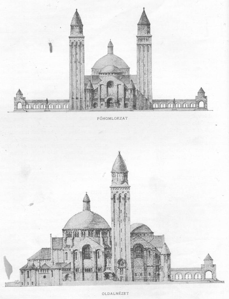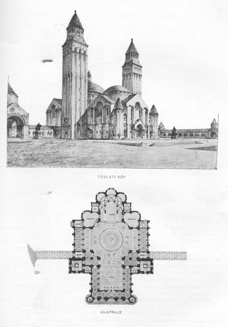Igaz ugyan, hogy a templomokat is a mindig változó korok mindig a maguk stílusában építették és így az analógia szinte kézenfekvővé teszi, hogy az új templomon is az új, a mai modern kor építészeti ízlésének kellene kifejezésre jutnia. De éppen itt van a baj. Mert a mai kor építészetének, ha vannak is már sikerült kísérletei ott, ahol az új életszükséglet az új építésnek pozitív útmutatást ad, de kialakult, egységes, az egész kort jellemző stílusa még nincsen. Ha egy bérház a maga egészében művészies megjelenése tud is lenni a jelen kor életszükséglet! megnyilvánulásainak, de annak egyes részei még nem azok a művészi virágok, melyek külön is, más csoportosításban, csokorba köthetők volnának s így nem marad más út, mint a már ősiségében is nemességit nyert-múltba visszanyúlni. Akik a modern törekvésekben tetszelgő új-német templomokat ismerik és érzik, hogy mennyire hiányzik azokból a történelmi templom-építészet igazi keresztény áhítata, csak helyeselhetik azt a szempontot, mely a legkeresztényibb korhoz, a románhoz folyamodott ihlettséget meríteni. Lechner pedig a legmélyére hatolván ennek a kornak, más elgondolásban is -- modernet teremtett.