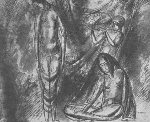 Ronde-bosse-jainak e rendkívül kövér testein kívül vannak domborművei, amelyeknek előadási módja visszanyúlik az ősi keleti szobrászat világába: a két rétegben való faragás. Itt is, nagyon helyesen, arra vetette a fősúlyt, hogy mentül kevesebbet vegyen el a kőlapból. Kísérletnek ezek beváltak s a kezdett munka szépen lesz folytatható.