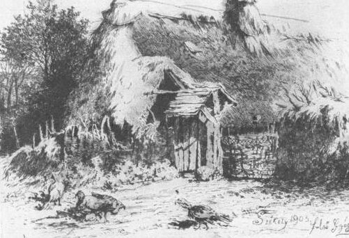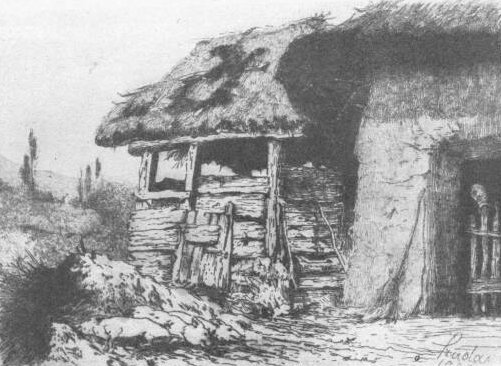 E motívumok egyszerűsége szépen összecsendül élete elvonultságával. Mint boldogult atyja, ő is szerette a kis pestmegyei Szadát s annak házai, udvarai, fészerei, utcái készen adták neki azt, amit karcolótűje számára keresett: magyar levegőt, eredeti formákat. Szinte egészen elmerült ezekben s szive minden szeretetét pazarolta ezekre az egyszerű, szép lapokra, amelyek fönntartják nevét.