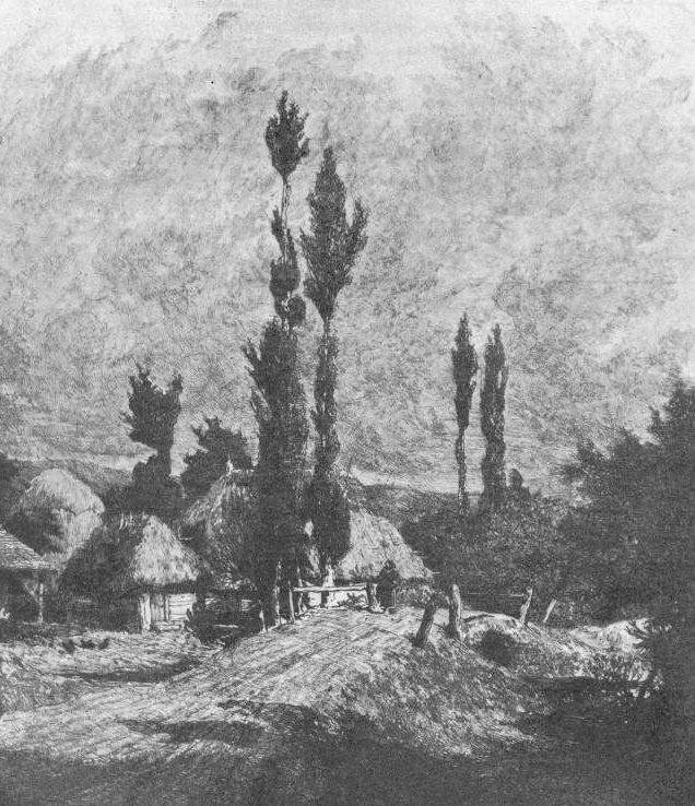Müveinek egy részét a Szépművészeti Múzeum grafikai osztálya szerezte meg. Olvasóink e grafikai lapok néhányát reprodukcióban látják viszont ebben a füzetben. A véletlen úgy hozta magával, hogy a boldogult művész néhány hónappal ezelőtt maga választotta ki e pár lapot a «Művészet»-ben való reprodukció számára, mint céljait és irányát kiválóan jellemző műveket. Kegyelettel iktatjuk ide e képeket, csöndes, meghitt órák szép termékeit.