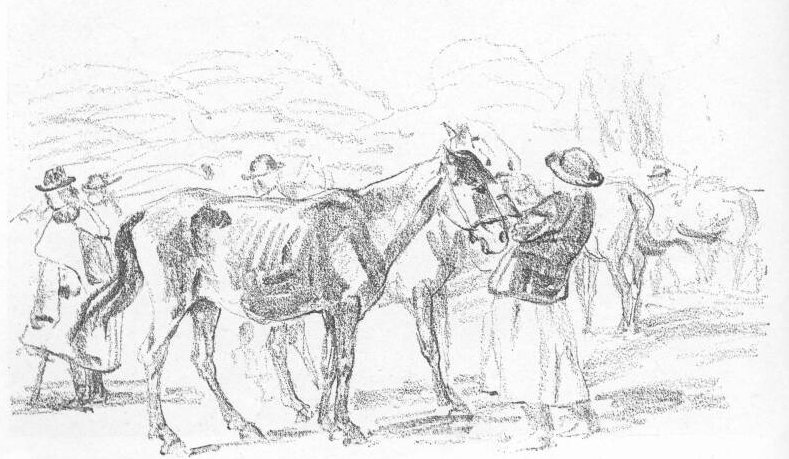 A középen erőteljes facsoport (vén olajfák), jobbra egy mély úton át messzenyúló völgyet látni, e mögött mozgalmas vonalú hegység, balra egy vigna, kazallal. Néhány paraszt alakja élénkíti az egész képet. A legfinomabb miniatura-festés, gyöngéden hangolt, gazdag színezéssel. A mester halála évéből való mű.