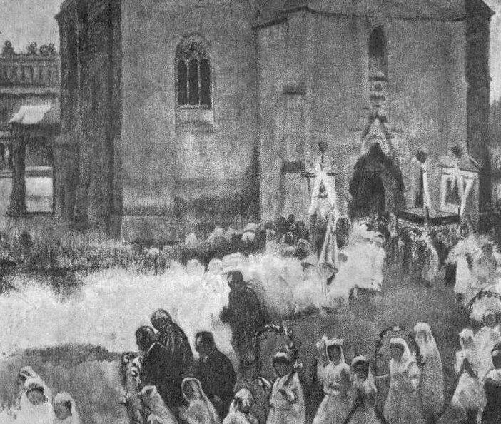 1813. őszén történt ez. Nagy rokonsága lévén, sokfelé hívták. Egy amolyan szolid atyafiságos cécó alkalmával, minő a kárpátalji papi házaknál ma is járja, összehozta őt a sors néhai Danilovics Antal, hardicsai lelkész, ifjú özvegyével, született Bacsinszky Máriával, Az alig húszesztendős, magas termetű, karcsú menyecske sajátos, eredeti asszony volt. Nagy, álmodozó, világoskék szemei révetegen tekintettek félig lehunyt, selymes pillái alól a távolba, mintha valami elérhetetlen után sóvá-rogna. Hófehér arcának koloritje egyre változott, majd vérhullám csapott homlokára, majd ismét halálosan sápadt lett, amint a belső indulatok korbácsolták örökké nyugtalan, örökké ideges kedélyét. A fiatal festő úgy belébolondult, hogy egy-két napra már a kézfogót is megtartották.