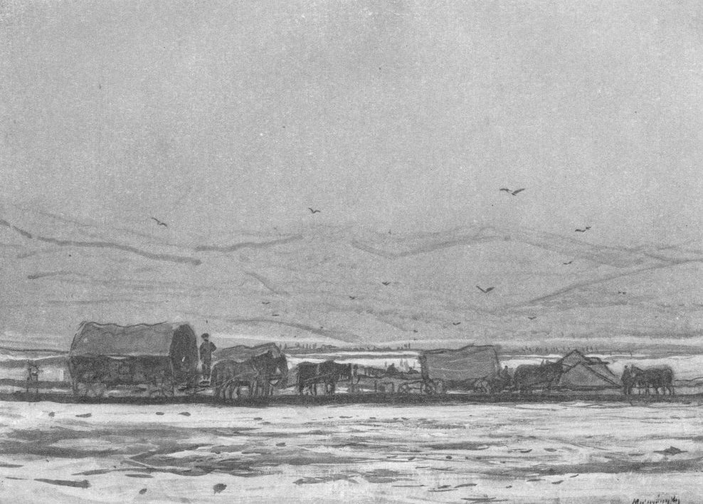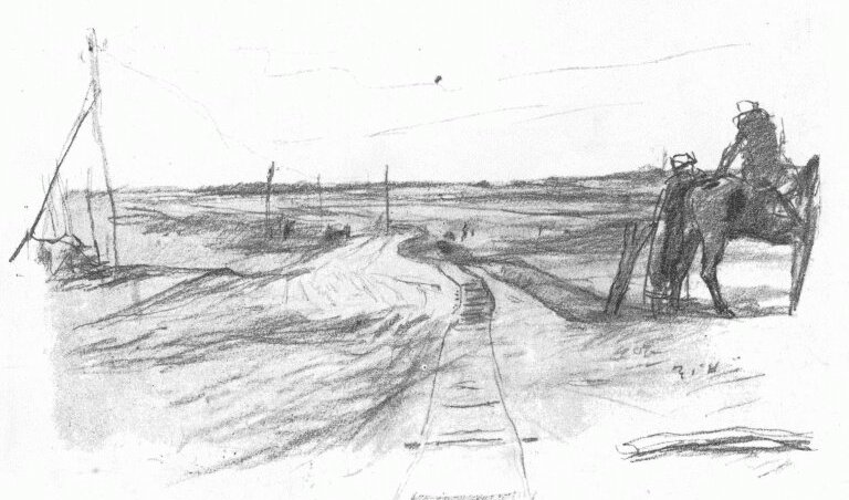 Így jutott el - mint a Budapesti Hírlap harctéri rajzolója, - - Mednyánszky László báró az északi harctérre.