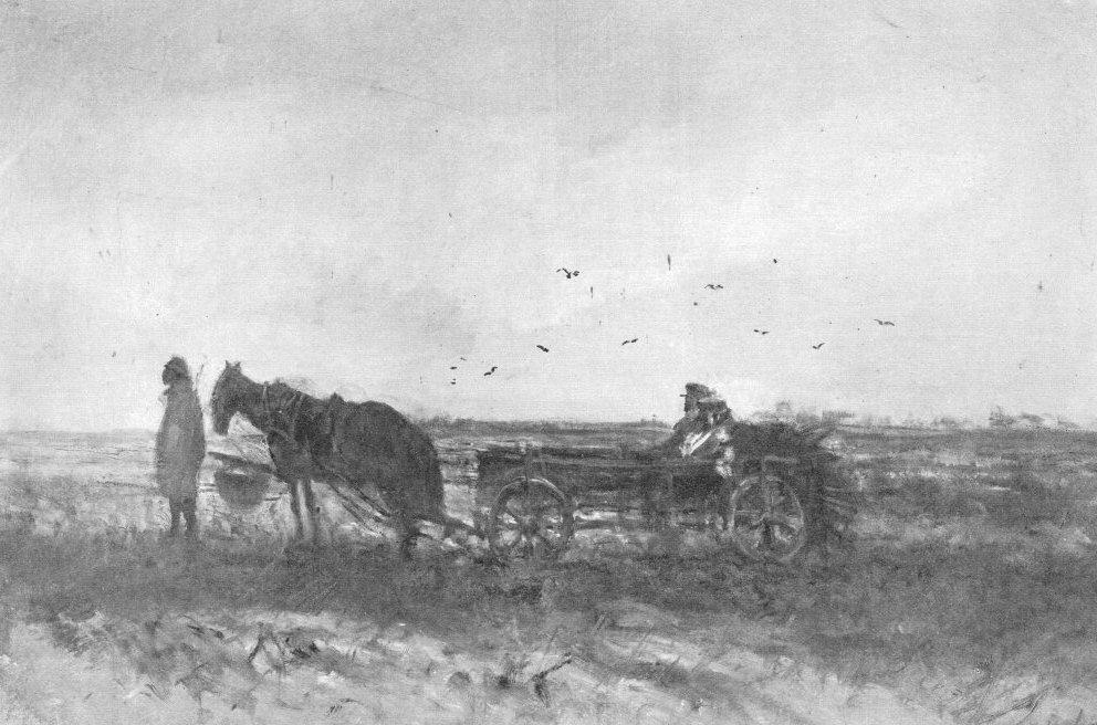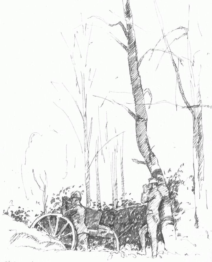 Egy másik képe: a rőzsét cipelő sebesült katona.