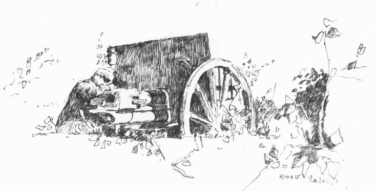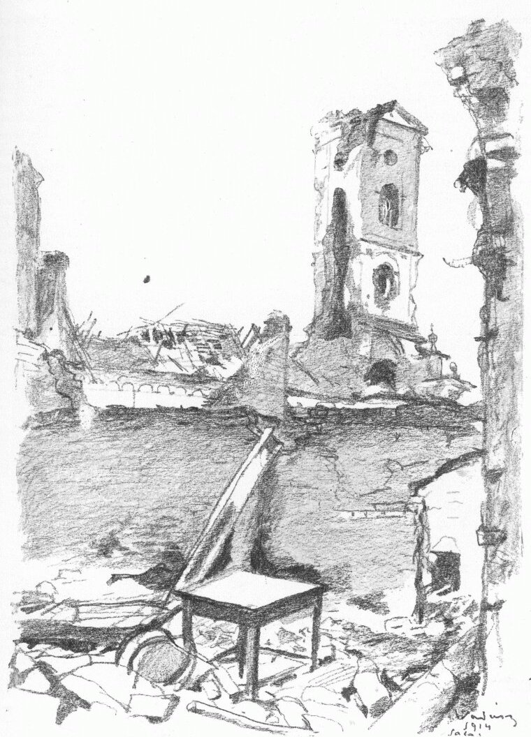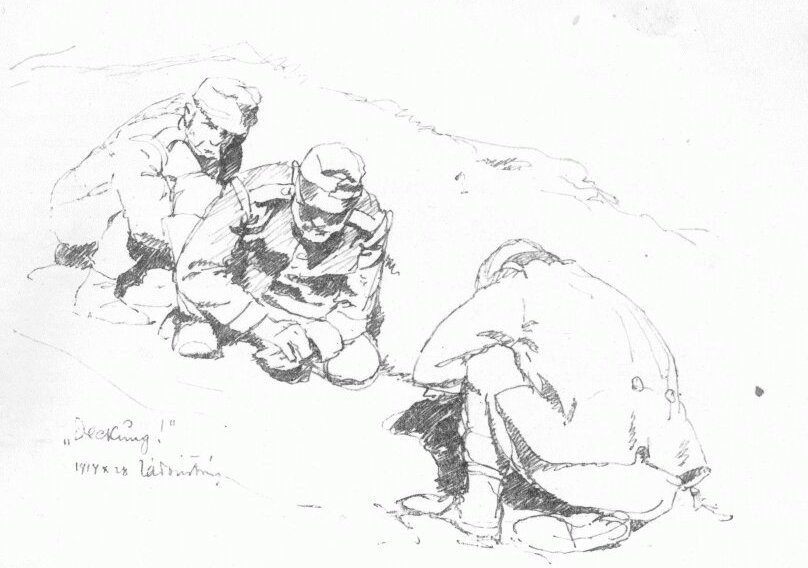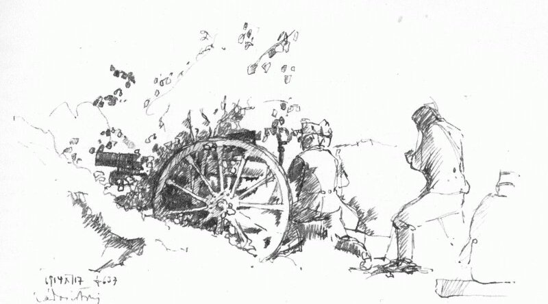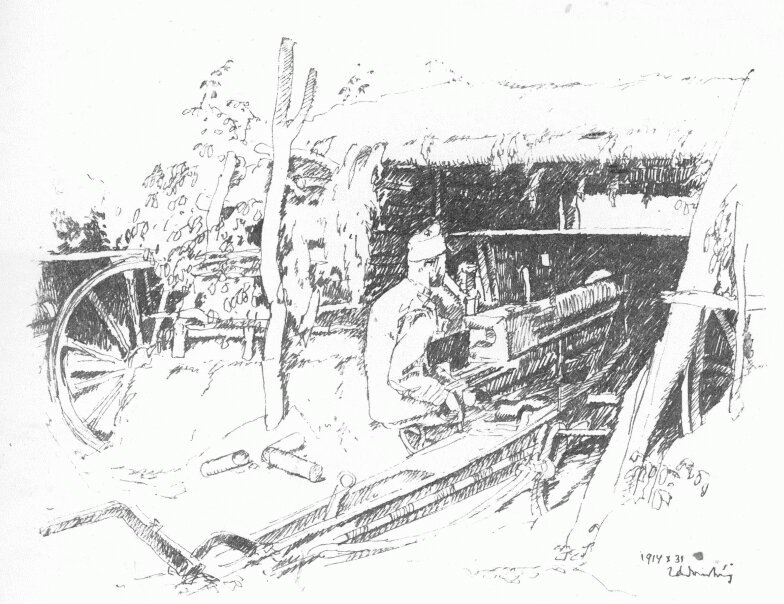 Amit a ma háborújából eddig művészi értékben látunk, az csak rajz lehet. Festői feldolgozásra természetesen még sem alkalom, sem idő nem lehetett.
