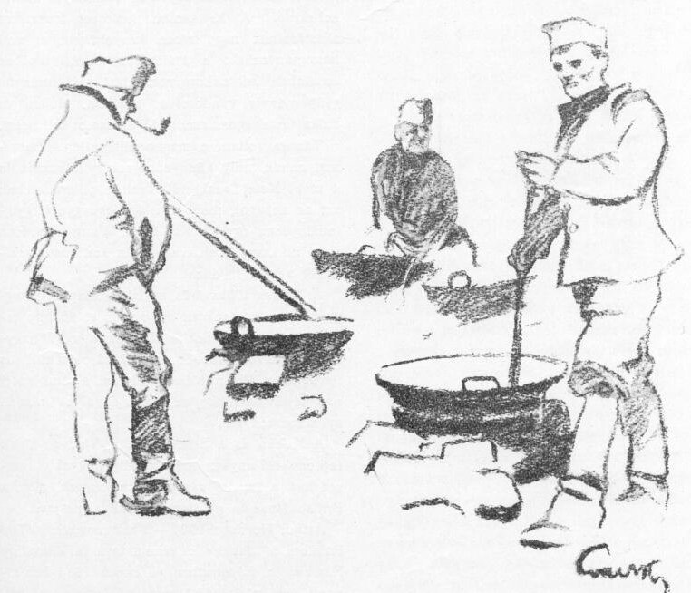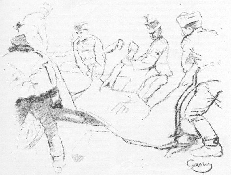 Hogy miért nem szerepel Garay Ákos a Művészet azon számában, mely, tudvalevő, a harctéri rajzolókat méltatja? Egyszerűen azért, mert a rajzok csak mostanában érkeztek meg. Pedig nem lehet teljes a sorozat Garay Ákos nélkül, így, ha külön is, kell hogy foglalkozzunk Garayval. Hisz ő teremtette meg a magyar huszártipust. Éppen ő az, ki minden egyes művében energikus bizonyítéka azon sokak által kétségbevont lehetőségnek, hogy van önálló magyar művészet, vagy legalább is nem hiú ábránd az utána való törekvés. Egy tekintet e rajzokra meggyőz ez állítás igaz voltáról. Örökre kár, hogy idő előtt letörte a betegség ezt a közel negyvennyolc éves művészt, kit rajongó fajszetetet s lángoló lelkesedés vitt a harctérre. Mennyit s minő nehézségekkel küzdve dolgozott s mily pokoli gúnyja a sorsnak: a lánglélek most is ott győz, szenved vitéz fiainkkal a harctéren, de a gyönge szervezet kimerül s a művész kénytelen lemondani élete legszebb álmáról. Mózes, kinek nem adatott meg az ígéret földje!