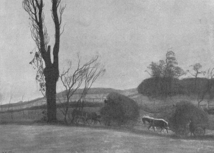 Eltekintve e külsőségektől, a tárlat művészi képén, a bemutatásra került anyag színvonalán annál kevésbbé állapítható meg, hogy háború van, hogy emiatt tehát a művészet berkeiben soványabbra érlelődtek a gyümölcsök, s a művészet barátainak, a kényesebb ízlésű amatőröknek e három és félszáz kép előtt, e szobrokkal szemben lejebb kell szállítani igényeiket. Bizonyos fokig kétségtelen, hogy ennek föltevése nem volna alap nélküli. A gyöngébb termés nem volna merőbsn váratlan, tekintve, hogy az elmúlt hónapok a maguk új, eddig át nem élt szenzáció-sorozatukkal, megpróbáltatást és izgalmakat rejtve korántsem voltak alkalmasak arra, hogy a festőket és szobrászokat művészi erejük megfeszítésére ösztökéljék. Mindjárt a hadüzenet után az itthonmaradottak számára kiadatott ugyan a jelszó, hogy a kultúr-munka minden téren folyjon tovább: de azért lehetetlen, hogy amikor perifériánkon a nemzet fegyveres ereje áll szemközt az ellenséges ágyúk és szuronyok erdejével, a művészek árkádiai légkörrel vegyék magukat körül. Ami munka folyik, az erősen redukált, csak annyi, amennyit a lehetőségek épen engednek. Ennek dacára, a tavaszi tárlaton összekerült anyagtól, ami művészi veretét illeti — mint már mondtuk — távol áll a háború által diktált kényszer. A képek és szobrok nem azt az impressziót keltik, mintha e tárlat azért rendeződött volna, hogy a háborútól megbolygatott időben is okvetlen fenntartassék a tavaszi kiállítás tradíciója. Hogy a művészek épen csak foglalkoztassanak, függetlenül munkáik értékétől, s hogy azok az összegek, amelyeket a király, az állam, a társulat, a főváros vásárlásokra fordít, ne maradjanak gazdátlanul, amikor a magánosok részéről történő művásár ugy is teljesen pangó. Kétségtelen, hogy a Műcsarnoknak nem egyszer voltak a mostani tavaszi tárlatnál művészeti súly dolgában jelentősebb, a szerencsés alkotások gazdagabb sorát nyújtó kiállításai. De az átlaga ennek a mennyiségileg kisebb, mindössze pár termet számláló tárlatnak, semmiben sem marad a kedvező, békés viszonyok közt megnyíló monstre-tárlatok átlaga mögött. A kritikának nem kellett enyhébb, irgalmas ízű mértékkel élnie, s vannak egyes munkák, amelyek a Műcsarnokban látott legjobb képek és plasztikai művek színvonaláig érnek föl.