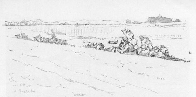Egy megnyúlt, félrefordított tojás, közepén két párhuzamos vonal, alatta két kacskaringós vízszintes, fölötte két szög, benne két pont, a tojás hegyén két körszelet, az oldalán két megnyúlt fülforma: mindez szabályos, szinte geometrikus formula. A hatása elemi erővel komikus. Mindenki első szempillantásra felösmeri a nagy leegyszerűsítés mellett. Ez Falus Elek, a jeles iparművész! Sőt többet mondunk, — mindenki csak most ösmeri meg, mert egyetlen formulára van visszavezetve az egész ember, még pedig annak a legrejtettebb tulajdonsága, az az álarc, melyet hord, a mi geometrikus ábraszerűvé teszi, az a merevség, a csupa egyenes vonal, melyből felépült, a melyet — akarata ellenére — hangsúlyoz. A művész, a ki ezt