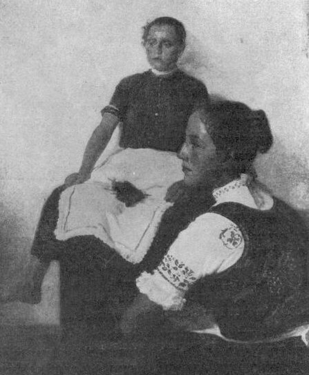 A tárlat speciális műtörténeti érdekessége azonban, amit külön kell megemlíteni, hogy egy oly művésztől hozott felszínre műveket, aki már rég feledésbe ment s akinek képeit művészetünk múltjával foglalkozó kutatók is alig ismerik. A művész Grimm Rezső, aki a nyolcvanas években halt el, miután előbb már tehetetlen, elborult elméjű emberként élt a fővárosban. E sorok írója tanuja volt, amikor a rendező-bizottság hivatalos helyiségében megjelent egy ősz, feketébe öltözött uriasszony, aki félénken és szerényen ajánlotta fel férjének kőbányai lakásán levő képeit, miután hallotta hogy «a művészek segíteni akarnak a háborúban sokat szenvedetteken». Eljött hát ő is, mondta, s azt hiszi, hogy ezzel férje szellemében cselekszik. A jelenet szép volt, sőt megható. Kitűnt, hogy az ősz úrasszony, aki még élő özvegye Grimm Rezsőnek: mindenét odaadta, ami számára értéket jelentett.