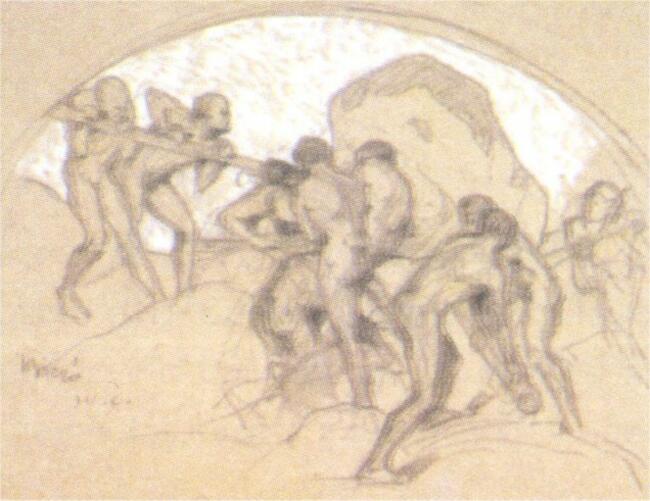 43. Biczó Ilona: Kompozíciós gyakorlat , 1910 körül papír, kréta, 628 x 450 mm