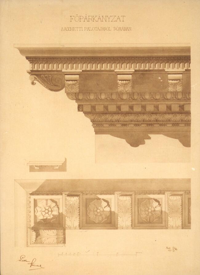 65. Balló Ede: Főpárkányzat Sacchetti palotájáról Rómában, 1879