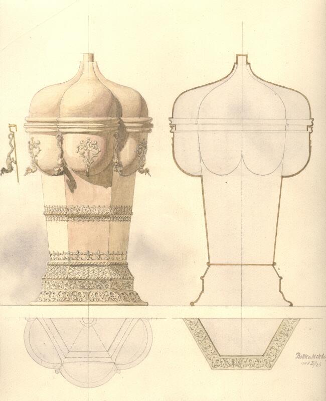91. Greisinger Ilona: Kerti dísztál terve, 1912 papír, akvarell, tus, 556 x 390 mm