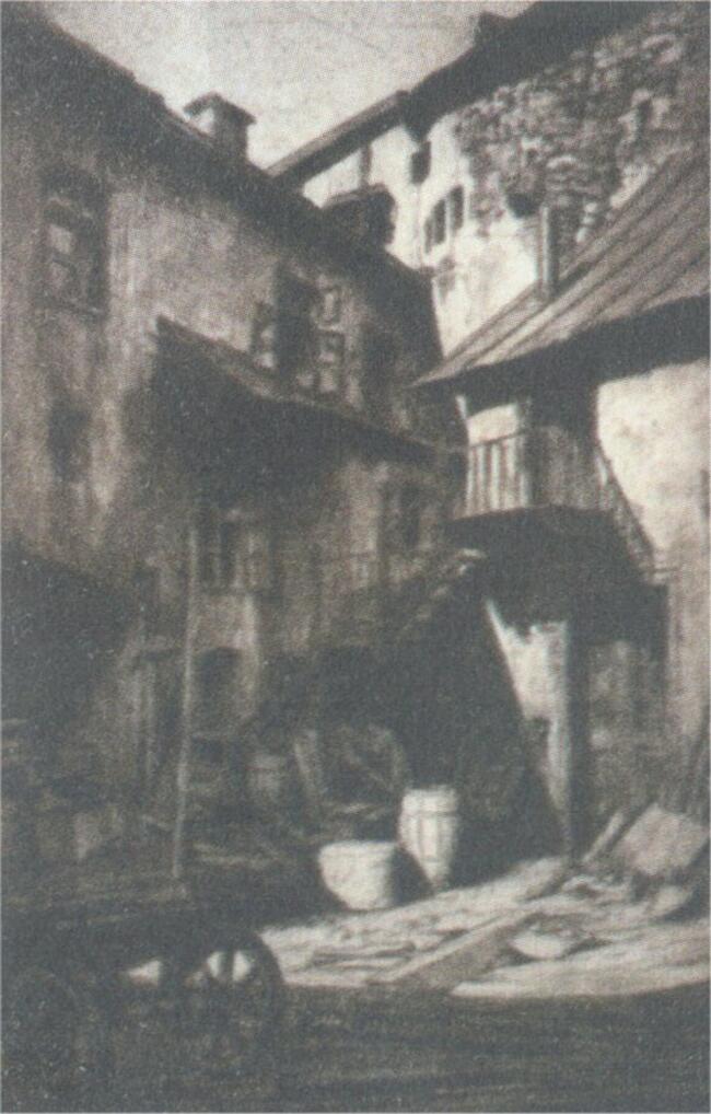 97. Angyal Géza: Udvarrészlet, 1911 papír, rézkarc, 630 x 410/773 x 536 mm