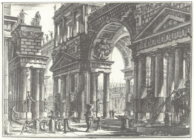 VIII: PRIMA PARTE DI ARCHITETTURE, E PROSPETTIVE INVENTATE, ED INCISE DA GIO. BATTA PIRANESI ARCHITETTO VENEZIANO DEDICATE AL SIG. NICOLA GIOBBE illetve OPERE VARIE DI ARCHITETTURA, PROSPETTIVE, GROTTESCHI, ANTICHITŔ; INVENTATE, ED INCISE DA GIAMBATTISTA PIRANESI ARCHITETTO VENEZIANO (Építészeti fantáziák, melyeket saját ötletei nyomán Piranesi maga karcolt rézlemezbe.)