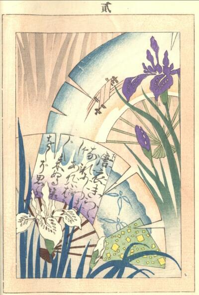 114. A nyolc híd és nőszirom stilizált formában, fametszet
