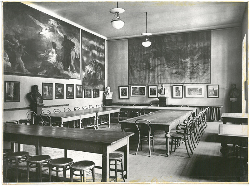 Az Országos Magyar Mintarajziskola és Rajztanárképző valamint a Magyar Királyi Női Festőiskola részt vett az 1900-as Párizsi Világkiállításon. Erdélyi Mór fényképei mutatják a kiállított anyagot, s a képeken felfedezhető az iskolák által erre az alkalomra készíttetett két fényképalbuma is. Erdélyi felvételei ugyan nem kerültek be a párizsi kiállításról kiadott könyv (Hornyánszky Viktor kiadása, 1901.) publikált képei közé, de az MKE gyűjteményében megtalálhatók. A falakon lévő képek közül többet felfedezhetünk a női festőikola életét huszonöt képben bemutató, kifejezetten a párizsi kiállítás számára készíttetett fotóalbum műtermeket ábrázoló fotográfiáin. Ezért valószínű, hogy a kiállított képek egy részét az 1899 folyamán a női festőiskolába járó növendékek készíthették. Neveiket a fényképalbum nem, de az iskola Anyakönyve megőrizte.